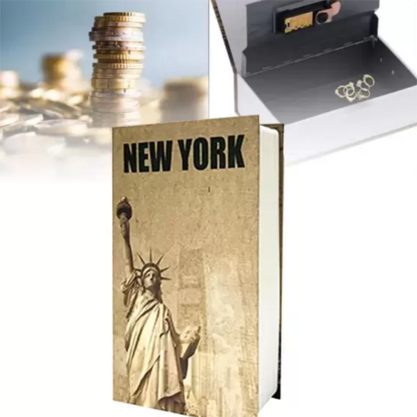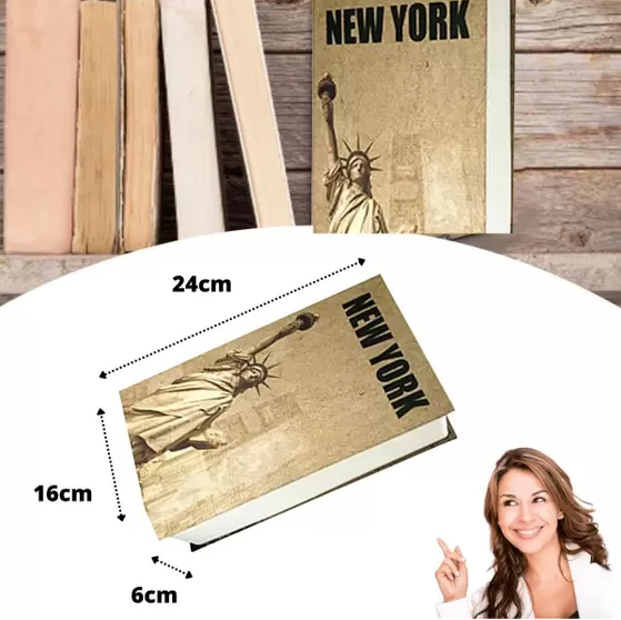 R$ 79,90Cofre Livro Estampado New York – Western Informações do Produto: O cofre camuflado apresenta uma maneira discreta e segura de guardar seus bens valiosos. Visto por fora, o cofre se parece com um livro e pode ser camuflado facilmente na estante. E ideal para guardar dinheiro, documentos e papeis importantes. Por dentro possui um cofre de metal fechado por chave.