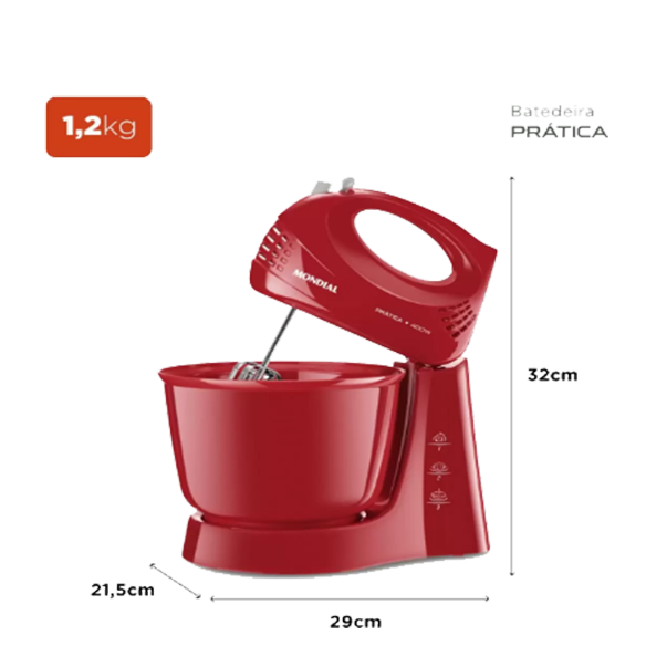 R$ 149,90A batedeira Prática B-44-R da Mondial não pode faltar na sua cozinha. Ela é ideal para você que gosta de fazer deliciosas receitas, de forma prática e rápida, porém sem abrir mão de qualidade. Ela acompanha um par de batedores, que são ideias para fazer deliciosas receitas. Conta ainda com uma tigela com material de polipropileno, tem potência de 400W e movimento comum. Isso sem contar que ele possui 3 velocidades mais a função turbo para atender todas as suas necessidades. Os batedores e se soltam facilmente quando o botão ejetor é pressionado.